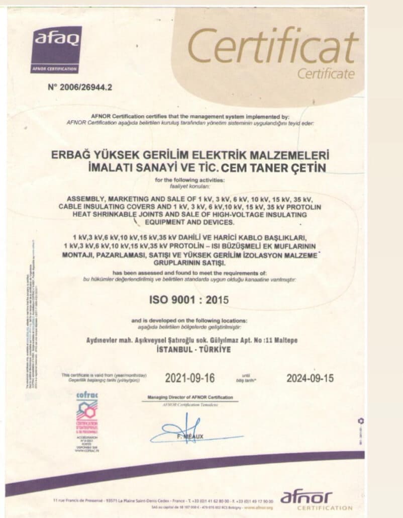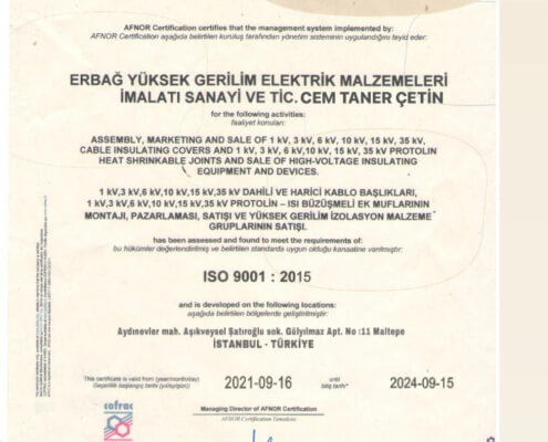 Erbağ Yüksek Gerilim olarak, kalite ve güvenilirlik konusundaki hassasiyetimizi ulusal ve uluslararası sertifikalarla tescillemiş bulunmaktayız. Ürünlerimiz, IEC, ISO ve TSE gibi sektörün önde gelen kalite standartlarına uygun olarak üretilmekte ve titiz testlerden geçirilmektedir. Bu sertifikalar, ürünlerimizin dayanıklılığı, güvenliği ve performansını kanıtlamakla kalmaz, aynı zamanda müşterilerimize en yüksek kaliteyi sunma taahhüdümüzü de gösterir.